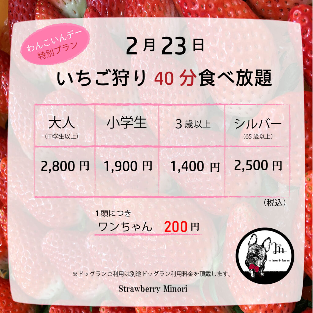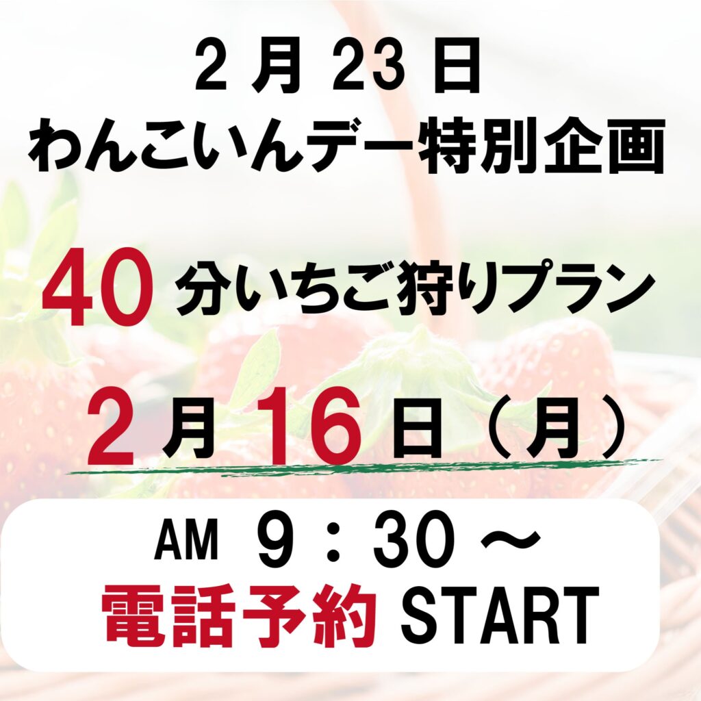 わんこいんデー特別企画といたしまして、40分のいちご狩りプランをご用意!