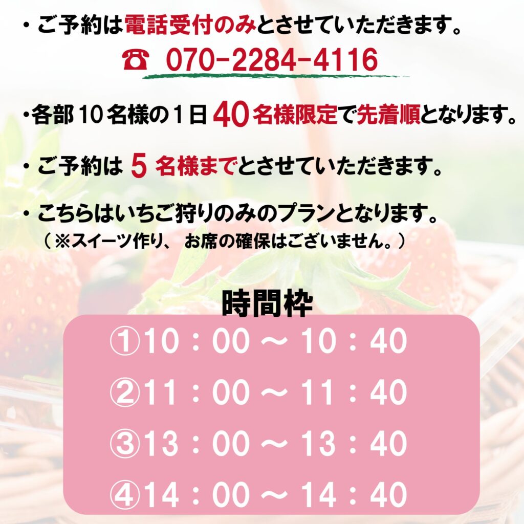 こちらのプランはいちご狩りのみのプランとなります。(※スイーツづくり・お席の確保はございません。)