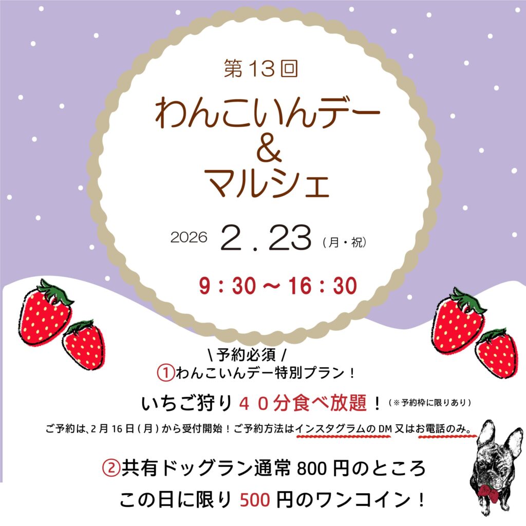 2026年2月23日(月・祝)に「わんこいんデー&マルシェ」を開催いたします。